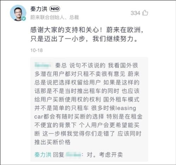 秦力洪承认蔚来考虑在欧洲开放买断选项 图源:蔚来从“订阅制”本身来看,领克的优势在于对运营体系的把控。业内人士认为,在订阅过程中,车辆所有权并没有转移,这将给汽车厂商带来很大的管理成本,同时车企也要面临产品库存折旧的问题。李斌也表示赞同。他认为,订阅模式是比汽车销售更难的事情,对运营体系、团队的能力都有更高的要求。