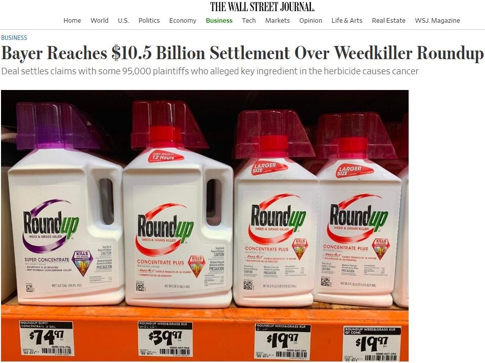 华尔街日报:拜耳就孟山都除草剂诉讼达成和解愿支付105亿美元