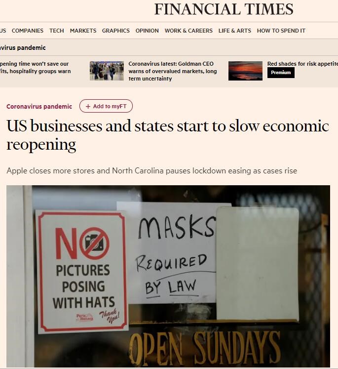 面对美国西部和南部州出现新一波新冠肺炎迅速蔓延的威胁,一些美国政界和商界领袖开始给逐步复工的行动踩刹车。本周三苹果公司宣布,将重新关闭设在得州休斯顿的七家零售门店。上周苹果才公布要关闭亚利桑那和三个南部州的11家门店。