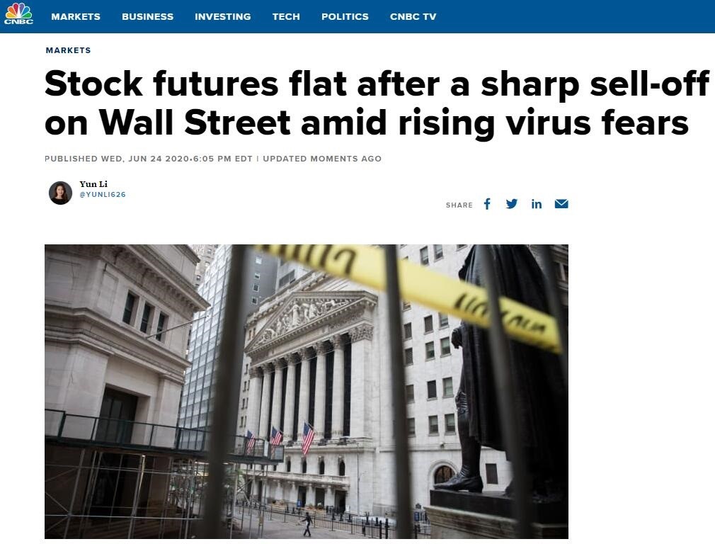 美国部分地区新冠肺炎病例激增,激化了市场对停工和经济形势恶化的担忧。此外,IMF进一步下调今年全球GDP增速预期,从4月预计的-3.0%降至-4.9%。三大美国股指本周三创将近两周来最大的单日跌幅。