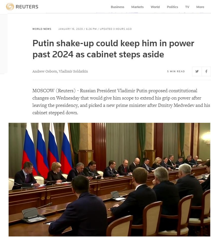 路透社 | 俄罗斯内阁大换血 普京或为2024年卸任后继续掌权