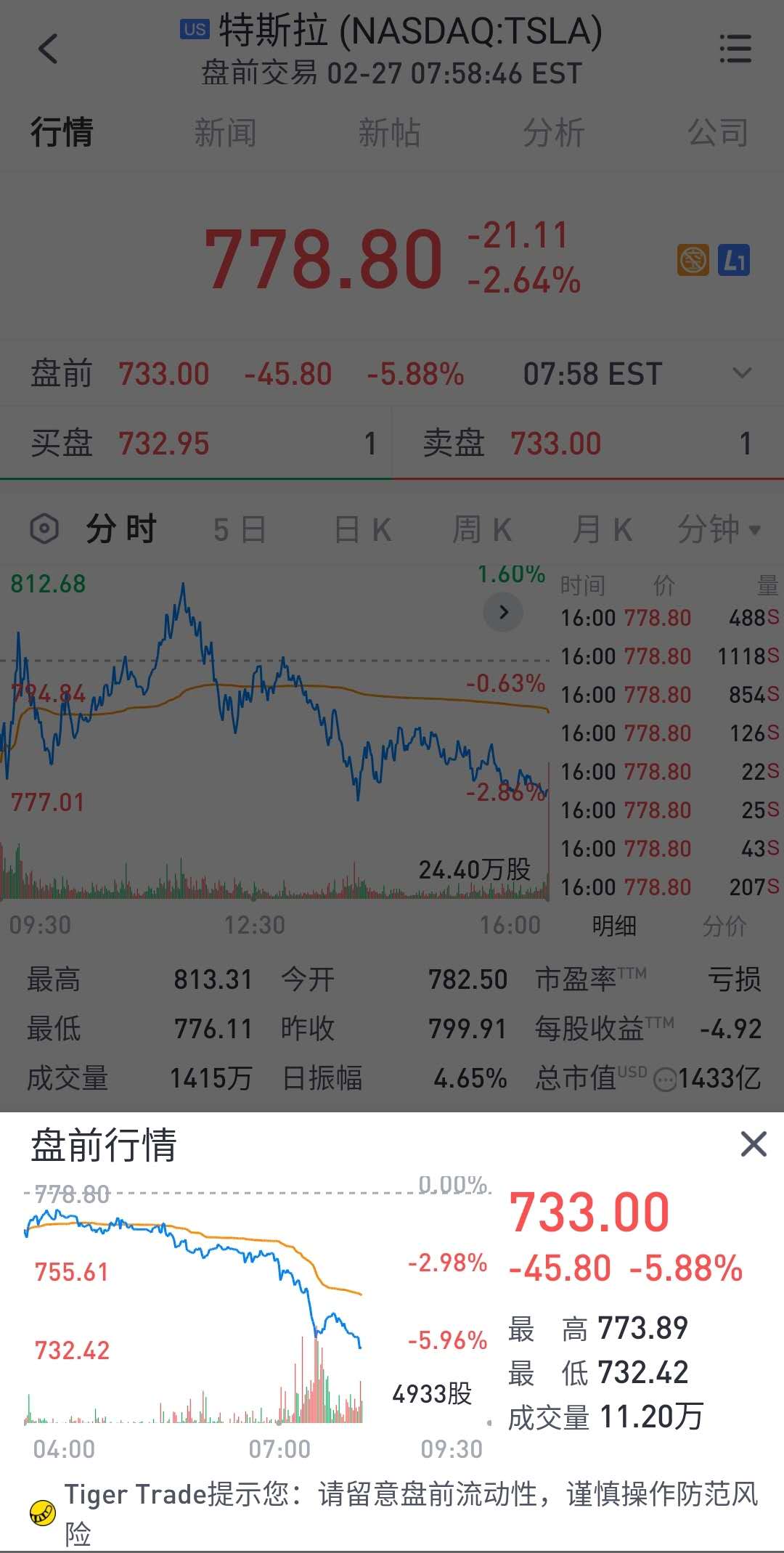 2月27日,特斯拉盘前跌幅近6%,特斯拉1月在中国新车注册量较上月暴跌46%,仅为 3563台。