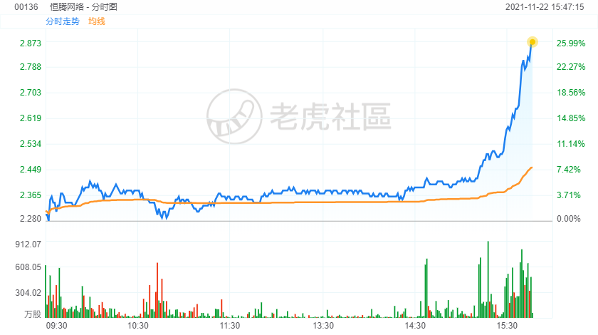 恒腾网络尾盘拉升涨近24%,中国恒大此前清仓其股份