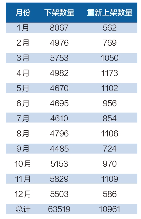 2021年苹果App Store针对中国本土开发游戏应用的“下架”和重新“上架”数量(单位:个)。 来源:“七麦数据”