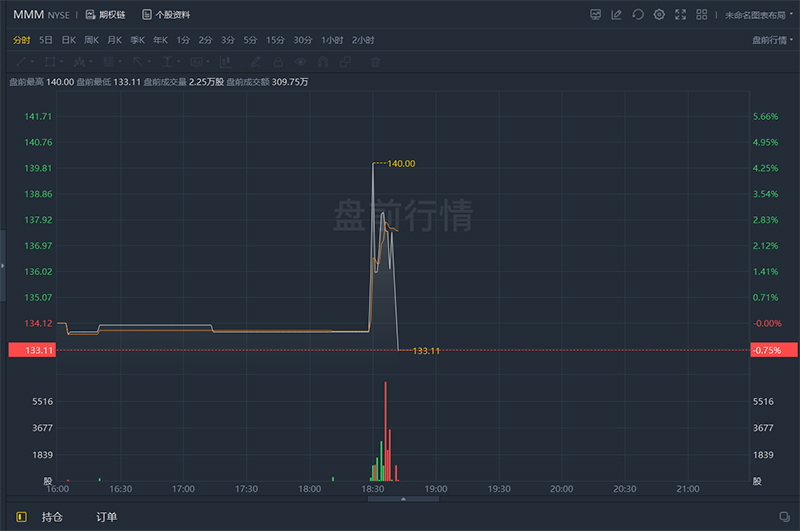 3M盘前股价快速走低,一度涨超2%,截至发稿跌0.75%。
