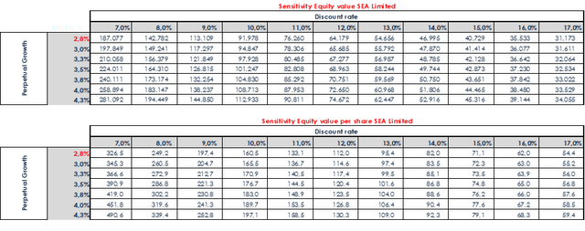 We have seen some sell-side equity researches where the target price is calculated as a sum of the parts of the three businesses (Garena, Shopee, and Sea Money) where: