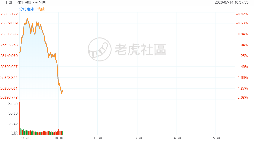7月14日,恒指数跌幅扩大至2%,国指跌2.22%,红筹指数跌1.95%。阿里巴巴、京东跌超6%,腾讯跌超4%;电池和汽车板块领跌。A股方面:沪指跌超1%,深证成指跌约1.6%,创业板指跌超1.8%,储能概念、电子板块跌幅居前。