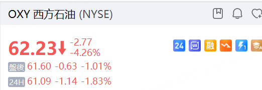 国际油价下跌,石油股西方石油跌1.8%,康菲石油、埃克森美孚跌逾1%。
