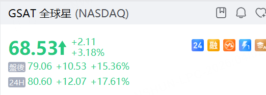 亚马逊据报洽谈以90亿美元收购卫星通信集团 全球星 ,后者夜盘大涨17%。