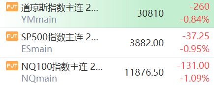 9月16日,美股股指期货下跌,道指期货跌0.84%,标普500指数跌0.95%,纳指期货跌1.09%。盘前要闻