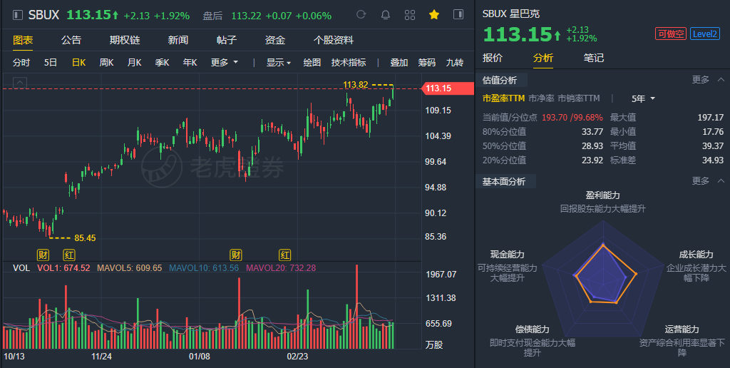 Price Action: Starbucks shares closed 1.92% higher at $113.15 on Tuesday.