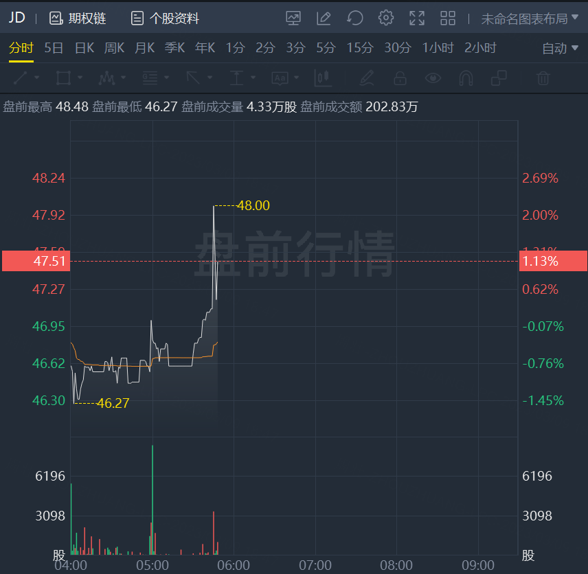 财报发布后,京东盘前小幅拉升,现涨超1%。