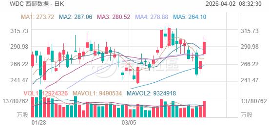 存储概念继续反弹。西部数据涨超10%,闪迪涨9.03%,美光科技大涨8.88%,希捷科技涨8%。