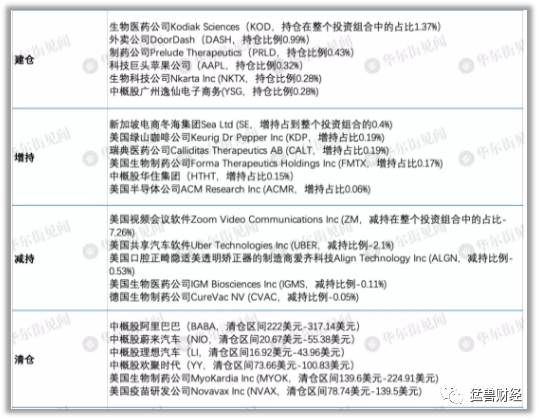 高瓴资本提交的四季度13F报告显示,其在当季增持9只股票,建仓19只个股,清仓13只个股,减持15只股票。