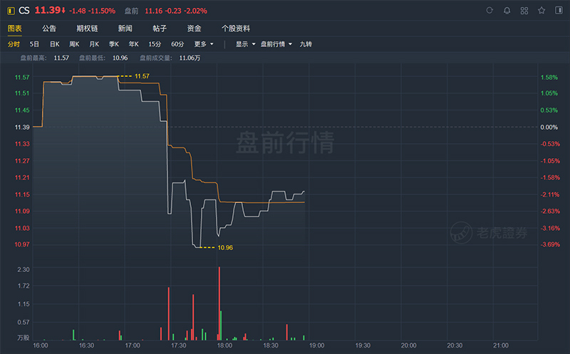 截至发稿,瑞士信贷美股盘前跌超2%,欧股跌幅扩大至2.3%。