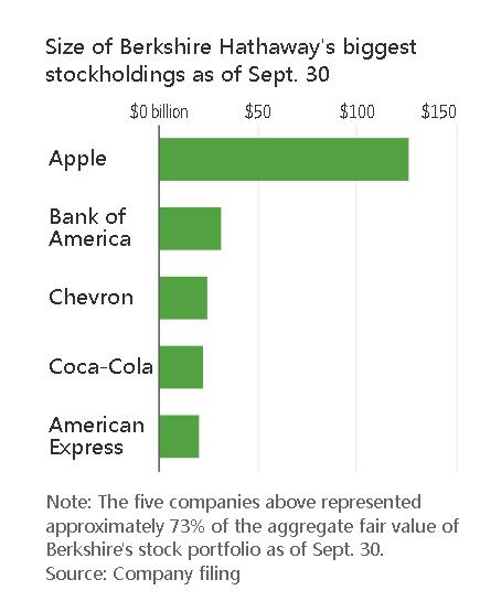 截至9月底,伯克希尔持有约244亿美元的雪佛龙股份,是雪佛龙第三大股东。