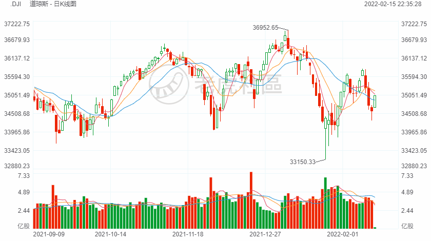 2月15日(周二),道琼斯指数开盘上涨307.46点,涨幅0.89%,报34873.63点;标普500指数开盘上涨45.03点,涨幅1.02%,报4446.70点;纳斯达克综合指数开盘上涨218.98点,涨幅1.59%,报14009.90点。最新消息显示,俄罗斯总统普京称已作出部分撤军的决定。