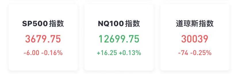 美国三大股指期货盘前涨跌不一,截至发稿,道指期货跌0.25%;标普500指数期货跌0.16%;纳斯达克100指数期货涨0.13%。