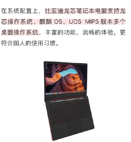 据了解,比亚迪刚发布了一款笔记本电脑,这款笔记本电脑搭载了一款龙芯3A4000芯片,是一款完整意义上的自主研发笔记本电脑。这也是比亚迪第一次发布自家的笔记本电脑产品,从相关产品参数来看,这款全新的笔记本电脑足以满足“日常办公”需求。