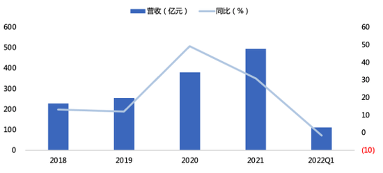 而在股价持续调整的同时,公司的业绩却仍在稳健增长。在疫情尚在的2021年,公司营收同比增长30.75%,归母净利润同比增长45.52%。
