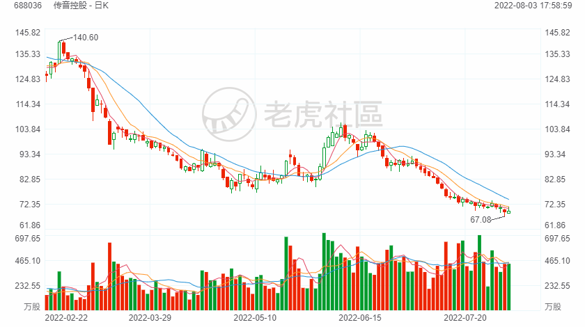 2019年9月,被誉为“非洲手机之王”的传音控股在上交所上市,由于深受二级市场认可,上市两年多的时间里,传音股价一路飙涨,从51.25元/股上升至256.04元/股,期间最高涨幅超500%。然而,巅峰过后,2021年2月起,传音股价便一路掉头向下,截至2022年8月3日,传音股价报收69.37元/股,较最高点跌去了72.9%。