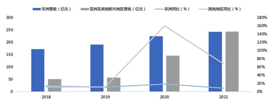非洲市场及新兴市场的营收及增速 资料来源:wind、36氪