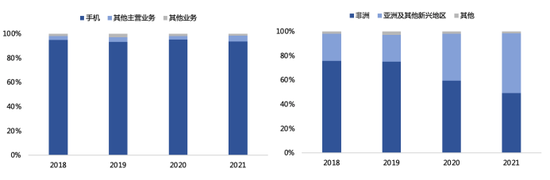 如今,无论是从功能机还是智能机来看,公司都在非洲拥有着绝对领先的地位。2021年,公司功能机的市占率达78%,智能机的市占率超40%。