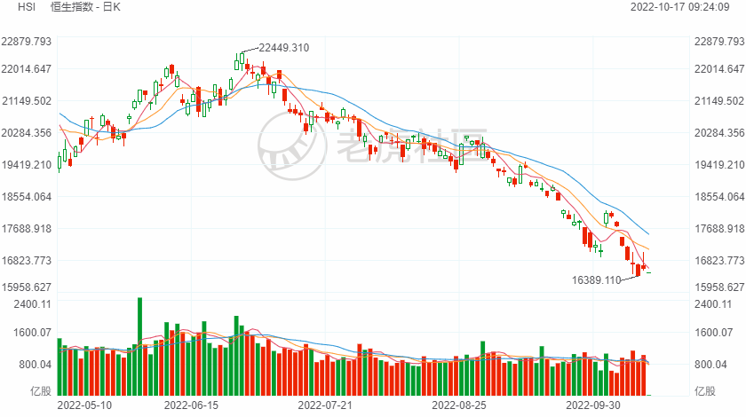 10月17日讯,上周五美股全线收跌纳指跌逾3%,中概股更是连跌5周。港股今日大幅低开,恒指跌0.65%,国指跌0.56%,恒生科技指数跌1.47%。盘面上,大型科技股下跌明显,百度跌超5%,京东跌近4%,美团、腾讯、阿里巴巴、快手皆下跌;汽车股继续下挫,造车新势力领衔走低,小鹏汽车跌7.45%;体育用品股、濠赌股、内险股、内房股与物管股纷纷下跌,上周五大涨的生物科技股部分回调。另一方面,家电股、建材水泥股、燃气股走强,零售股、石油股多数上涨。