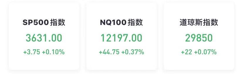 11月27日,美国三大股指期货上涨,截至发稿,道指期货涨0.07%;标普500指数期货涨0.10%;纳斯达克100指数期货涨0.37%。