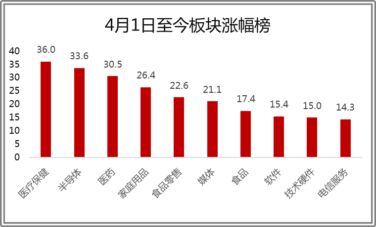判断当下的炒作主逻辑的最好方法,就是看板块涨幅,4月1日至今,涨幅最大的板块主要分为两类: