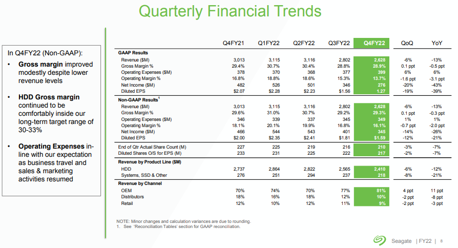 此外,希捷科技还给出了2023年第一财季的业绩指引: