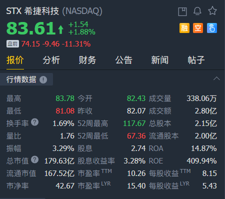 周五盘前,希捷科技大跌超11%。希捷科技第四财季营收26.3亿美元,低于分析师预期为28亿美元;第四财季调整后每股盈利1.59美元,低于分析师预期为1.91美元。此外,其以"全球经济形势疲软"为由降低了其下季度业绩指引。