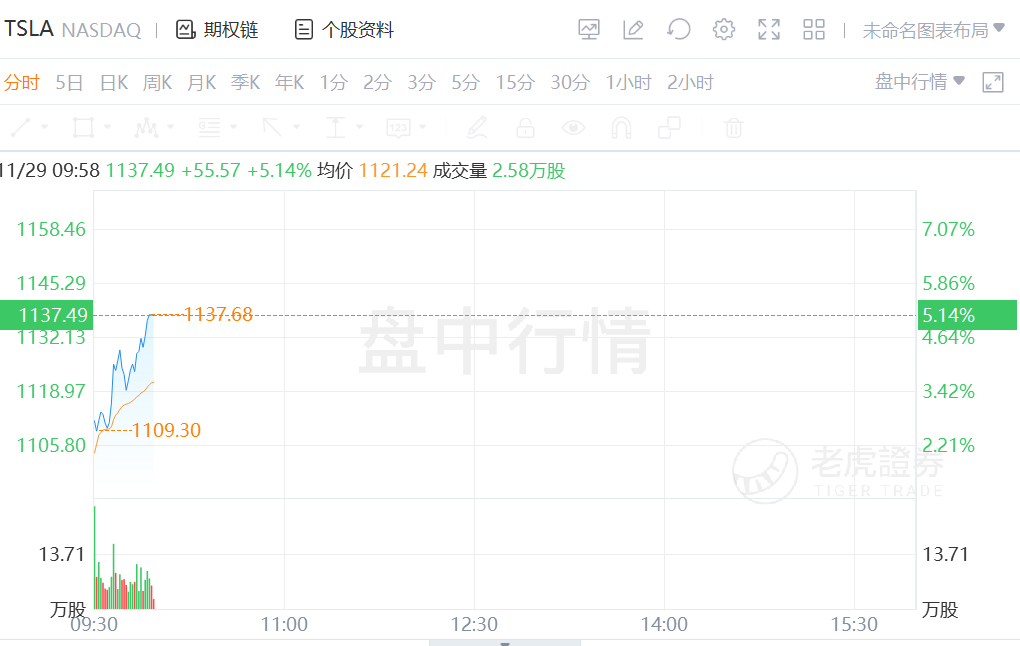 持续走高,现涨超5%,报道称特斯拉德国工厂将于12月投产,明年上半年或生产3万辆汽车。