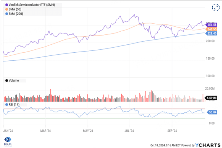 半导体指数ETF-HOLDRs 在2023年上涨了72%后,今年又涨了超过44.59%。正如芝加哥交易大厅的老话所说:“猪会长胖,贪心的猪会被宰。”对冲风险并锁定一些利润在此时显得尤其重要。
