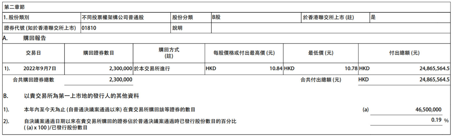 小米集团今日回购230万股,共耗资约2486.5万港元
