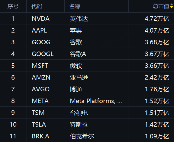 美股明星科技股涨幅持续扩大!特斯拉、英伟达涨超5%,谷歌A总市值超微软进入美股前三