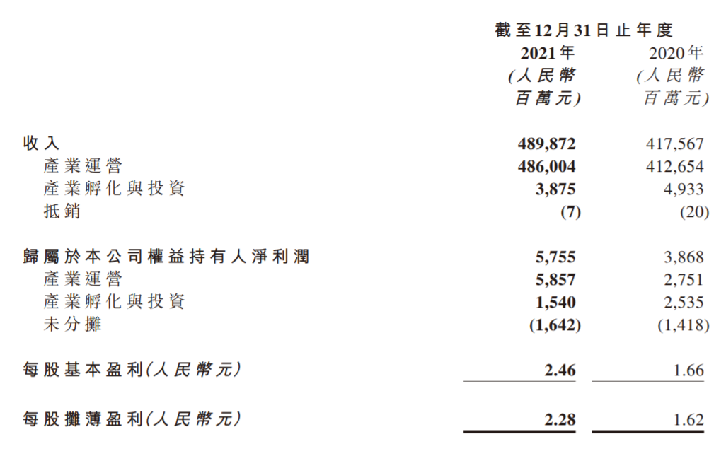 3月31日,联想控股发布2021年全年业绩。财报显示,2021年全年营收4898.72亿元,市场预期4320.2亿元,去年同期4137.31亿元;净利润57.55亿元,市场预期75.27亿元,去年同期37.94亿元;每股收益2.28元,市场预期2.75元,去年同期1.62元。