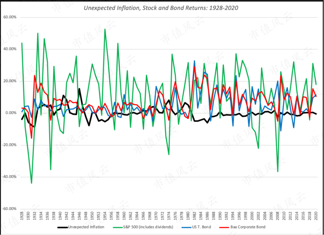 受通胀影响最严重的资产类别是国债和公司债券,但意外通胀造成的损害远大于预期通胀。