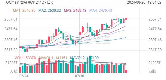 黄金主连 2412 报2557.0美元,涨幅0.42%: