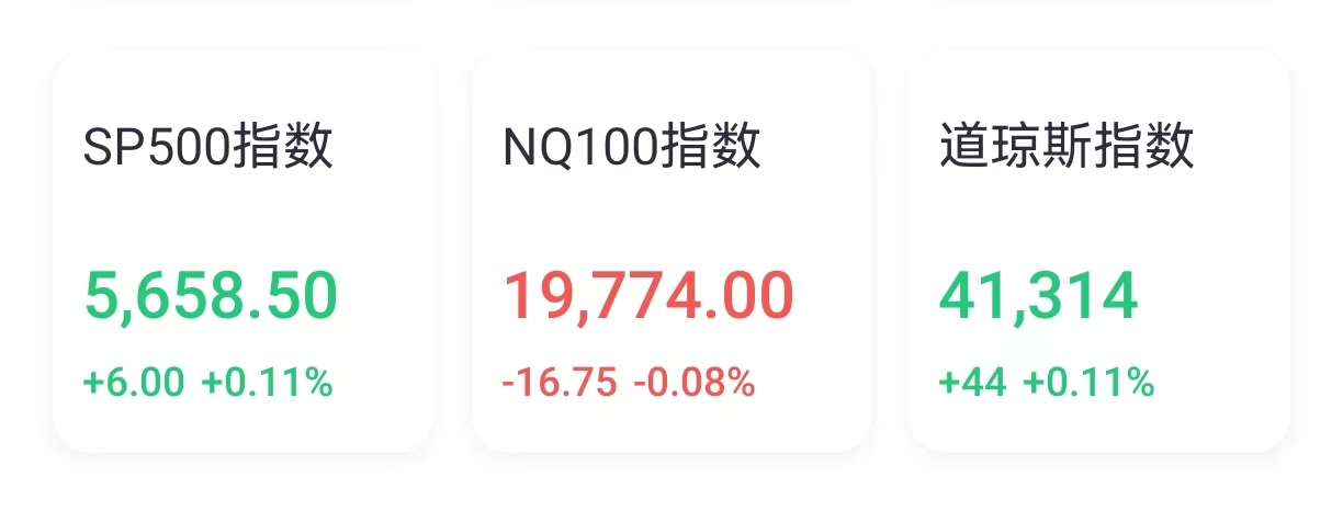 8月26日周一,美股盘前三大股指期货涨跌不一,热门个股波动不大,截至发稿标普500指数期货涨0.11%,纳指期货跌0.08%,道指期货涨0.11%: