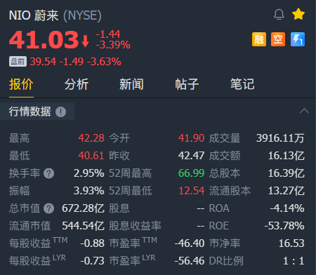 中概新能源汽车股美股盘前走低,蔚来跌超3%