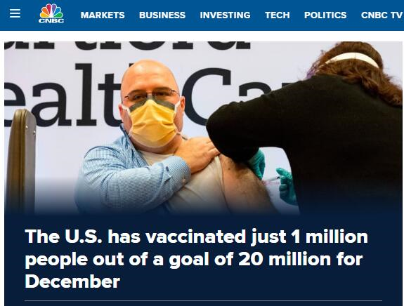 CNBC | 本月迄今接种新冠疫苗美国人仅过百万