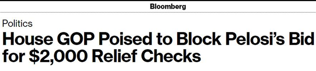 彭博社 | 美众议院少数党领袖:佩洛西试图通过2000美元支票的努力将会失败