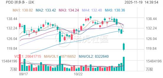 拼多多 昨日大跌超7%,11月跌幅超11%。财报显示,拼多多三季度营收1082.8亿元,同比增长9%。这一增速较前几个季度明显放缓,为公司近年来营收增速首次降至个位数区间。归属股东净利润293.3亿元,同比增长17%,Non-GAAP净利润313.8亿元,同比增长14%。