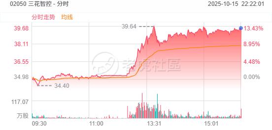 今日,三花智控H股、A股股价均于午后大幅上涨。