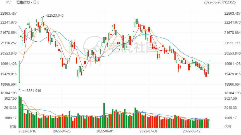 8月25日讯,隔夜美股三大指数集体收涨,中概股狂飙。港股延续昨日反弹,恒指涨0.85%重回2万点,国指涨1.04%,恒生科技指数涨1.92%。