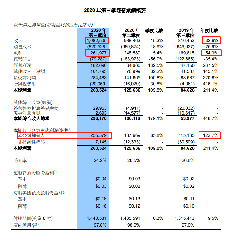 11月11日讯,中芯国际公布三季度财务报告,财报显示: