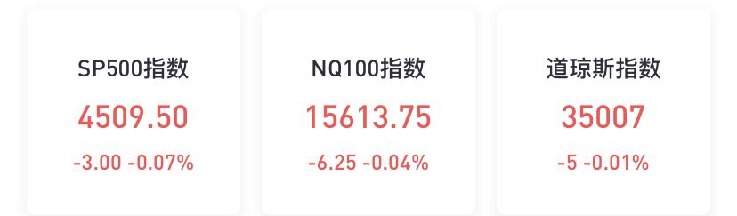 9月9日,美股三大股指期货下跌,截至发稿,道指期货跌0.01%;标普500指数期货跌0.07%;纳斯达克100指数期货跌0.04%。市场消息