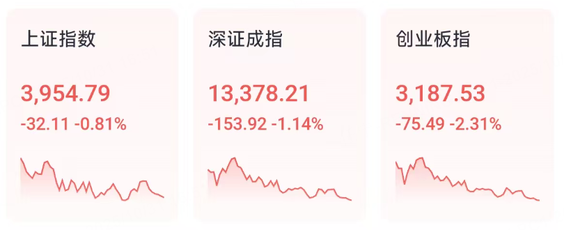 10月31日,A股震荡走弱。截至收盘,沪指跌0.81%,深成指跌1.14%,创业板指下跌2.31%。
