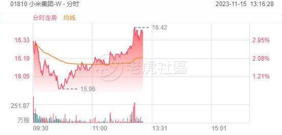 11月15日,小米集团-W股价午后持续走高,现涨逾3%;消息面:小米汽车已实现小批量试生产,新车或明年2月上市。